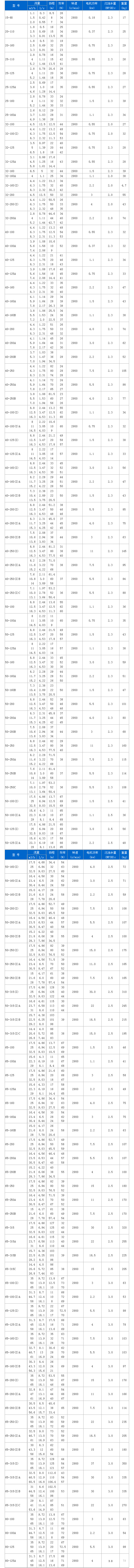 性能參數ISG、IRG、GRG、YG、IHG、IHGB型立式管道離心泵性能參數